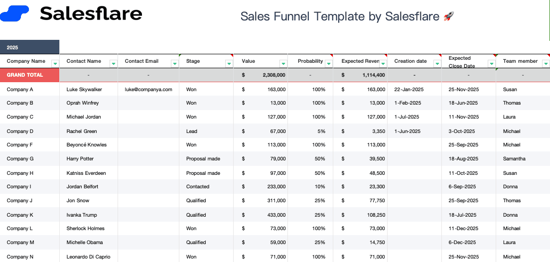 Salesflare CRM Excel 템플릿