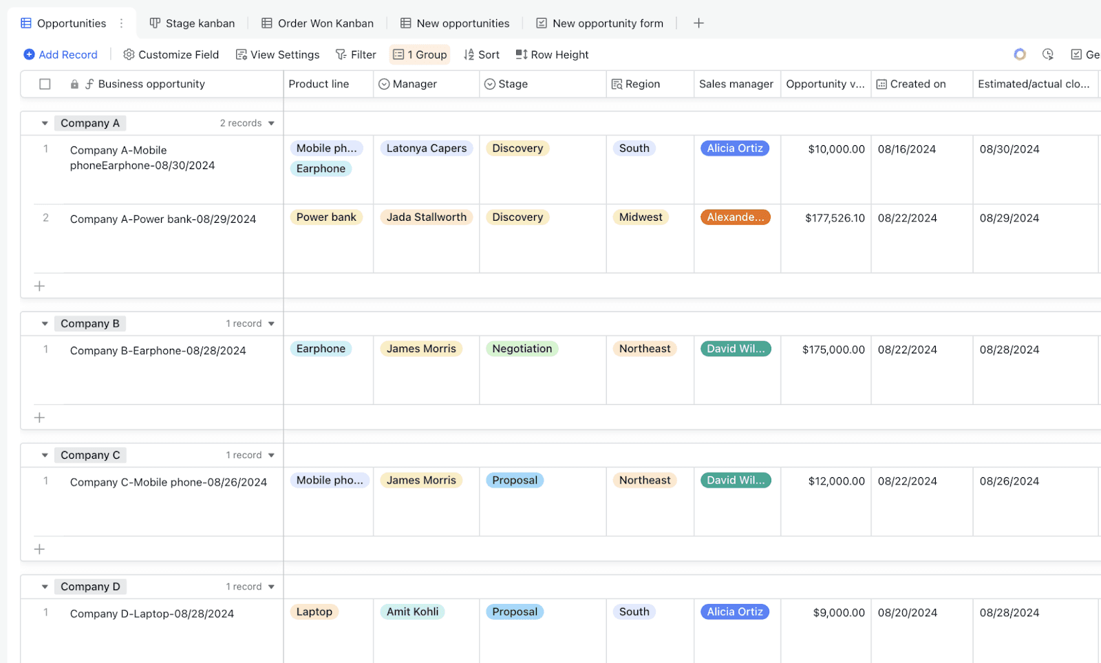 예를 들어, 기업은 초기 접촉부터 전환까지 리드의 전체 수명 주기를 추적하는 리드 관리 시스템을 설계할 수 있습니다. 영업팀은 리드를 다양한 팀원에게 할당하고, 다양한 보기와 사용자 정의 가능한 차트를 사용하여 진행 상황을 시각화할 수 있습니다.