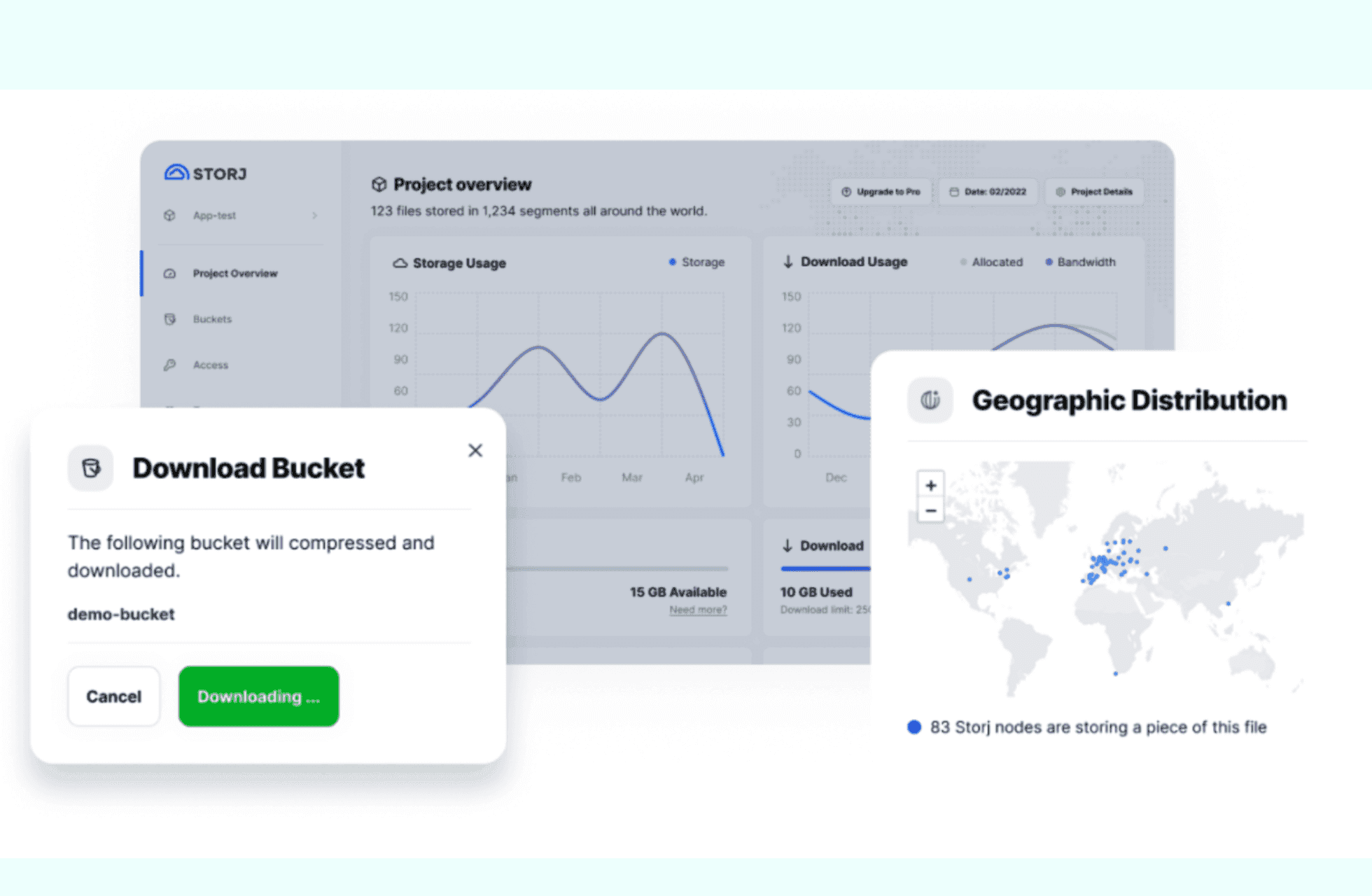 Storj는 클라이언트 측 암호화와 전 세계 데이터 분산을 결합한 분산형 클라우드 스토리지 제공업체입니다. 기존의 중앙 집중식 클라우드 스토리지와 달리 Storj는 데이터를 자동으로 분할, 암호화하고 “파머”라 불리는 전 세계 스토리지 노드 네트워크에 분산합니다. 직관적인 개발자 API와 SDK 덕분에 통합이 쉽고, 기업들이 가파른 학습 곡선 없이 분산형 스토리지를 도입할 수 있습니다.