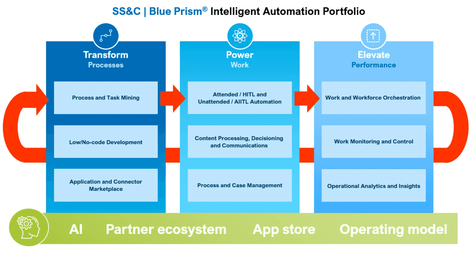 연결된 RPA 플랫폼: Blue Prism은 전통적인 로보틱 프로세스 자동화를 AI, 머신러닝, 자연어 처리와 통합하여 복잡한 비즈니스 프로세스의 지능형 자동화를 가능하게 합니다.