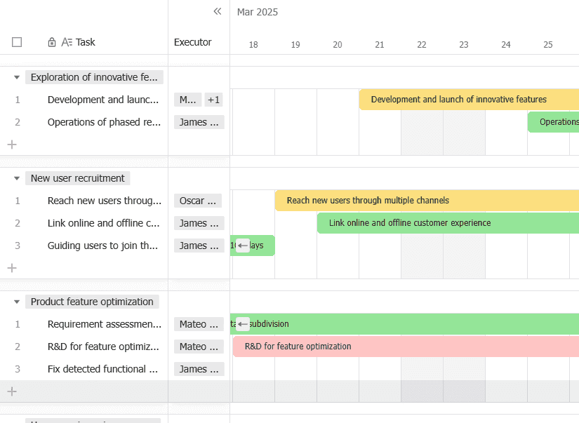 프로젝트 관리: 모든 프로젝트는 초기 제안서와 계획부터 진행 보고서 및 최종 산출물에 이르기까지 문서의 흔적을 생성합니다. ECM은 모든 프로젝트 관련 콘텐츠를 중앙 집중화하여 모든 팀원이 동일한 정보를 기반으로 작업하도록 합니다. Lark Base의 프로젝트 관리 템플릿을 사용하면 팀은 작업을 관련 문서에 직접 연결하고, 간트 차트로 마일스톤을 추적하며, 모든 이해관계자에게 한 곳에서 최신 정보를 제공할 수 있습니다.