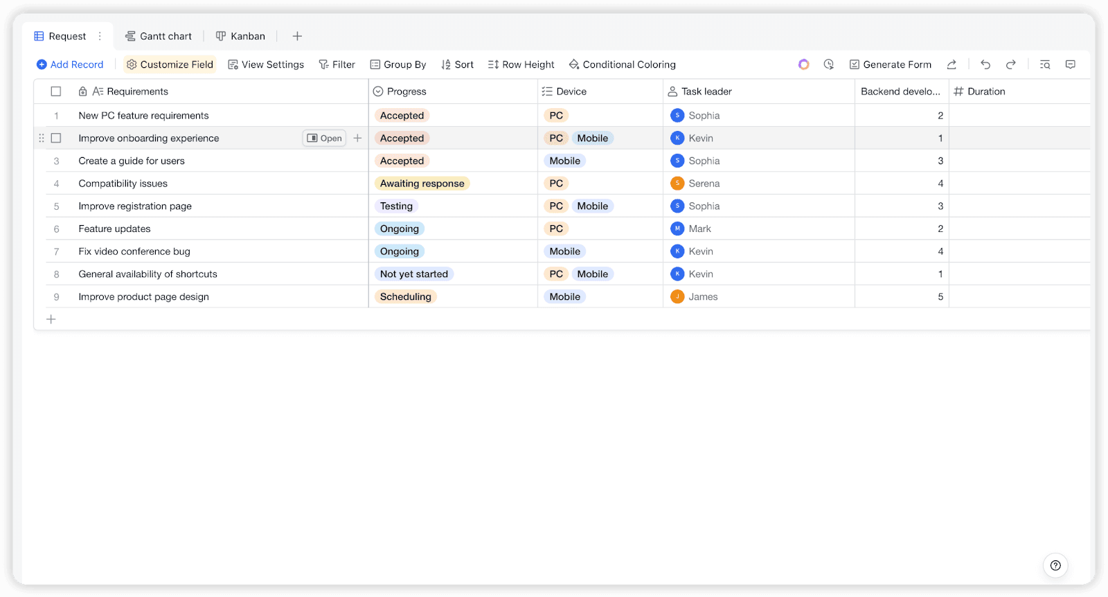 Lark Base: 프로젝트 요청 목록