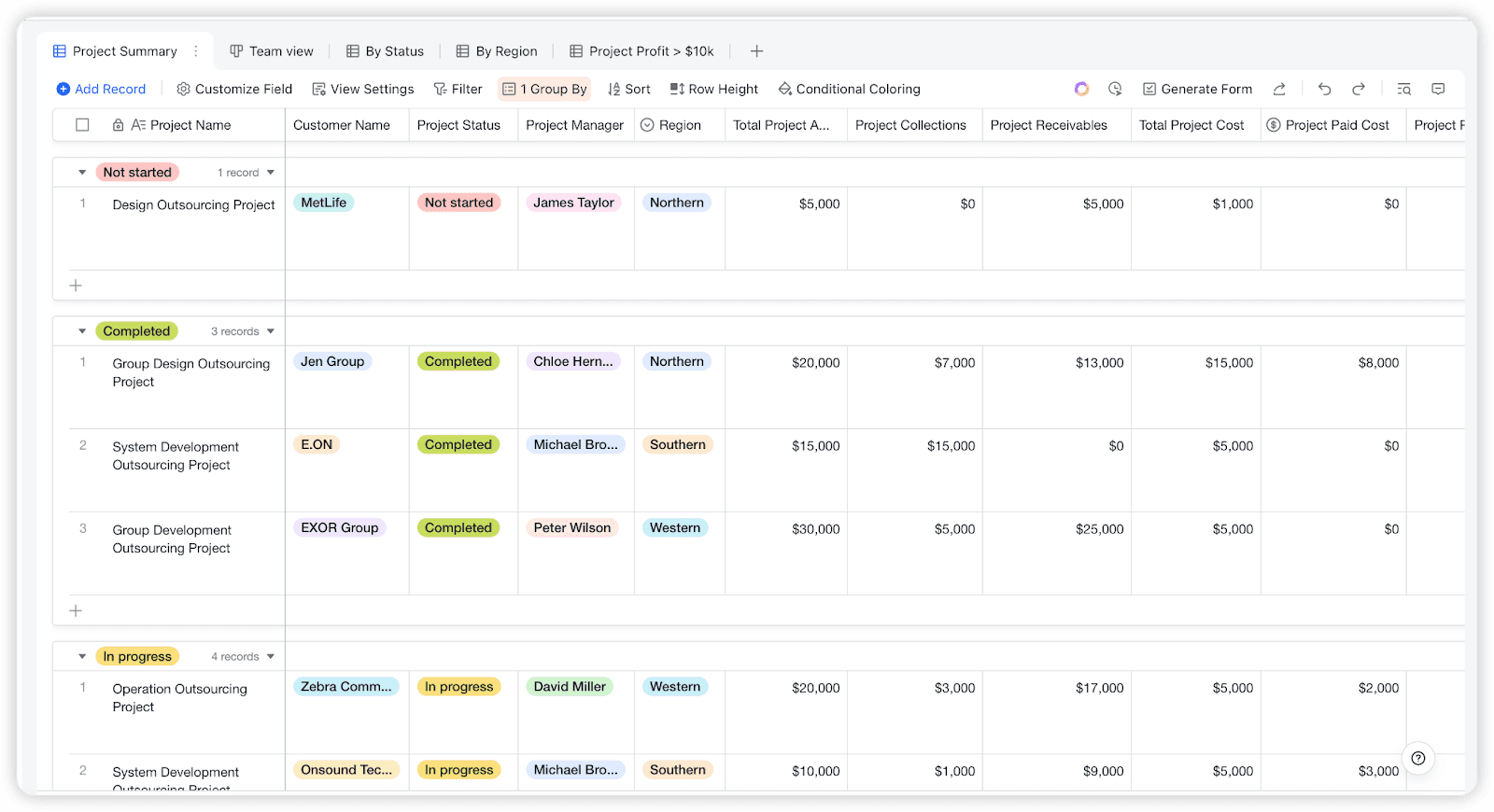 Lark의 앱 모음은 모든 기술 수준의 사용자가 프로젝트 관리의 도전에 맞설 수 있도록 합니다. 사용하기 쉽고 매우 맞춤화 가능한 도구를 찾는 팀에게는 Base가 적합합니다. Base는 특정 프로젝트 요구 사항에 맞게 맞춤 설정할 수 있는 코드 없는 데이터 관리 플랫폼입니다. Base의 데이터는 다양한 방식으로 시각화되어 주요 지표를 파악하고 인사이트를 발견하는 데 도움을 줍니다. 더 복잡한 작업을 위해서는 Meegle이 있으며, 이는 보다 전문화된 프로젝트 관리 기능을 제공합니다.