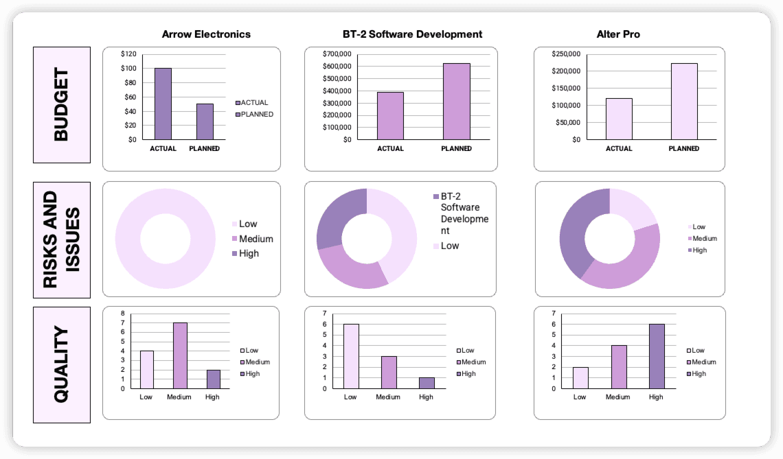 이 템플릿은 여러 프로젝트의 진행 상황, 일정 및 주요 지표를 한눈에 확인할 수 있는 종합적인 다중 프로젝트 대시보드를 제공합니다. 팀이 작업 상태, 자원 배분 및 전체 프로젝트 상태를 모니터링하는 데 도움을 주어 의사 결정과 효율성을 향상시킵니다. 차트와 상태 표시기와 같은 시각적 요소를 통해 한눈에 명확한 인사이트를 제공합니다. 여러 이니셔티브와 팀을 관리하는 프로젝트 관리자에게 이상적입니다.