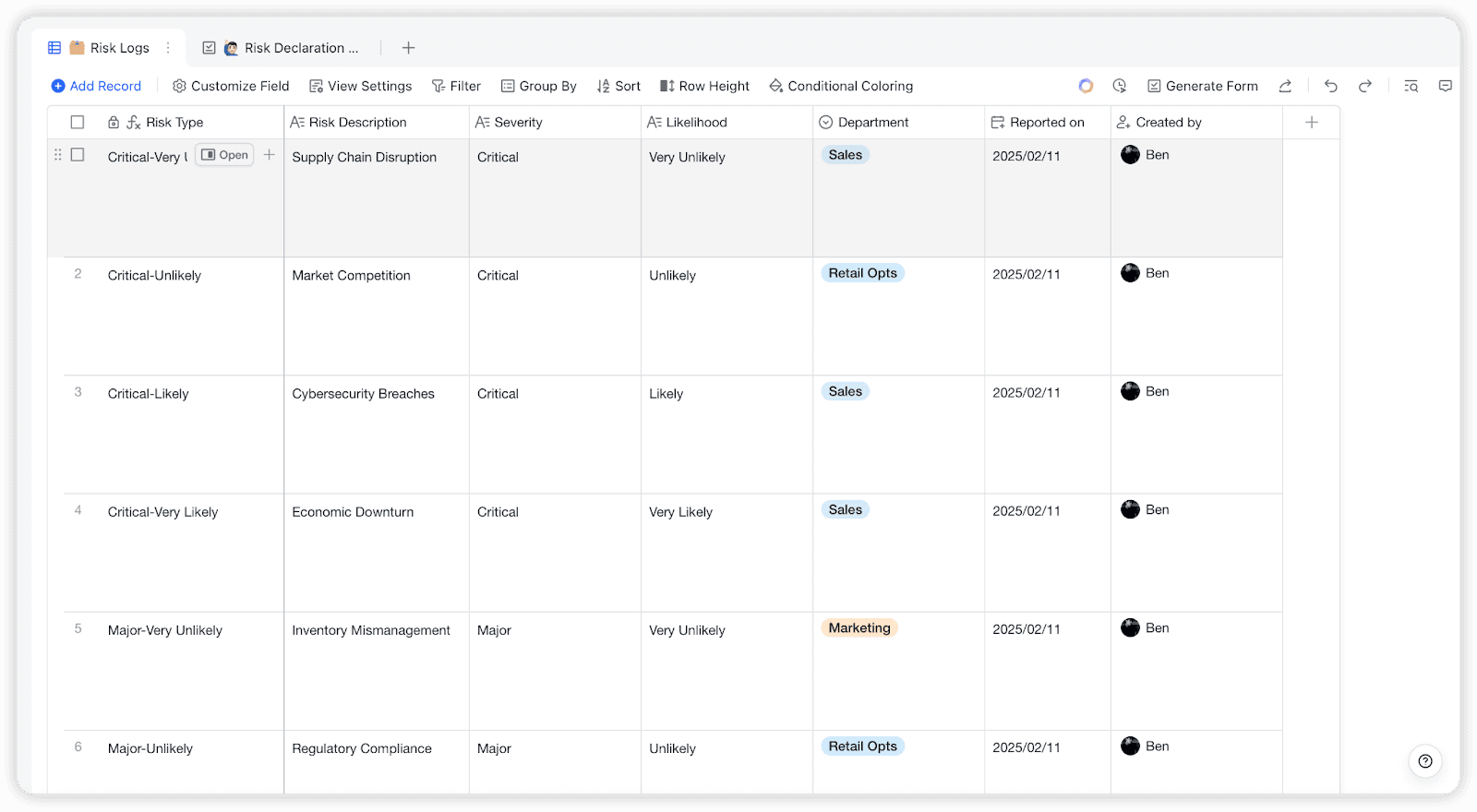 Lark Base: 4x4 위험 평가