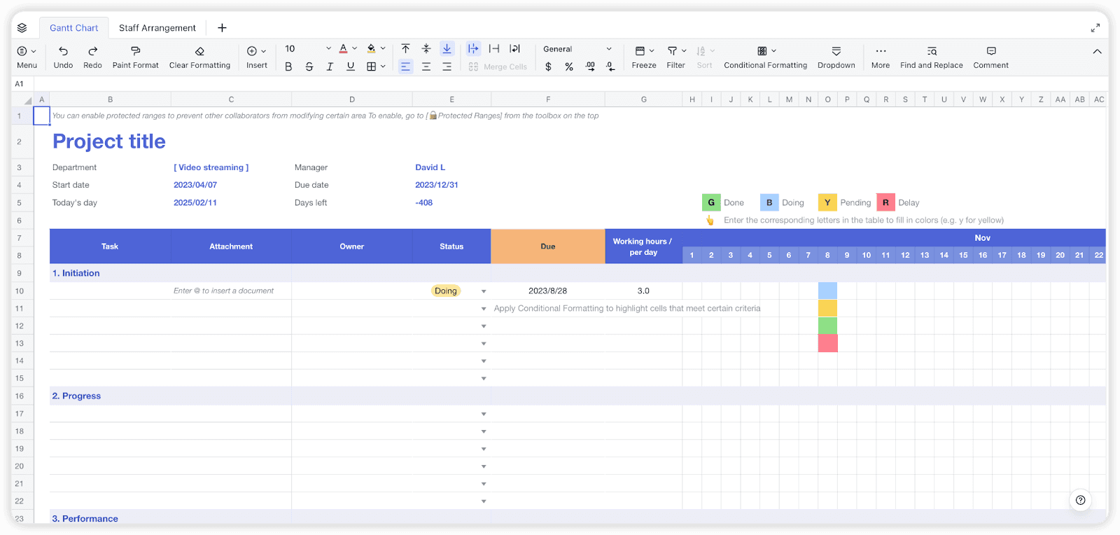 Lark Sheets: 프로젝트 간트 차트