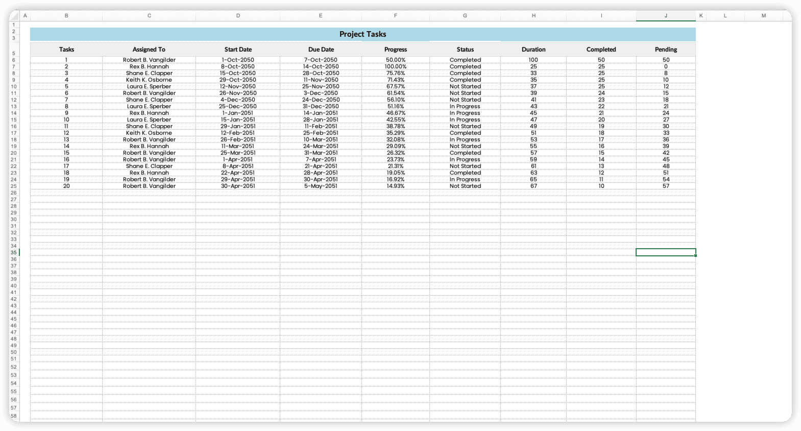 마이크로소프트 엑셀: 간단한 프로젝트 관리