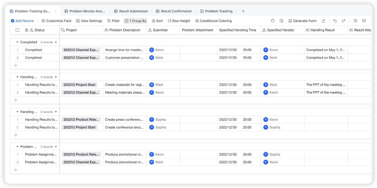 Lark Base: 프로젝트 문제 추적기