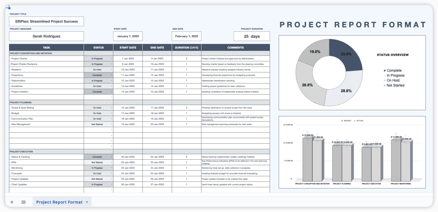 Google Sheets: 프로젝트 보고서 형식