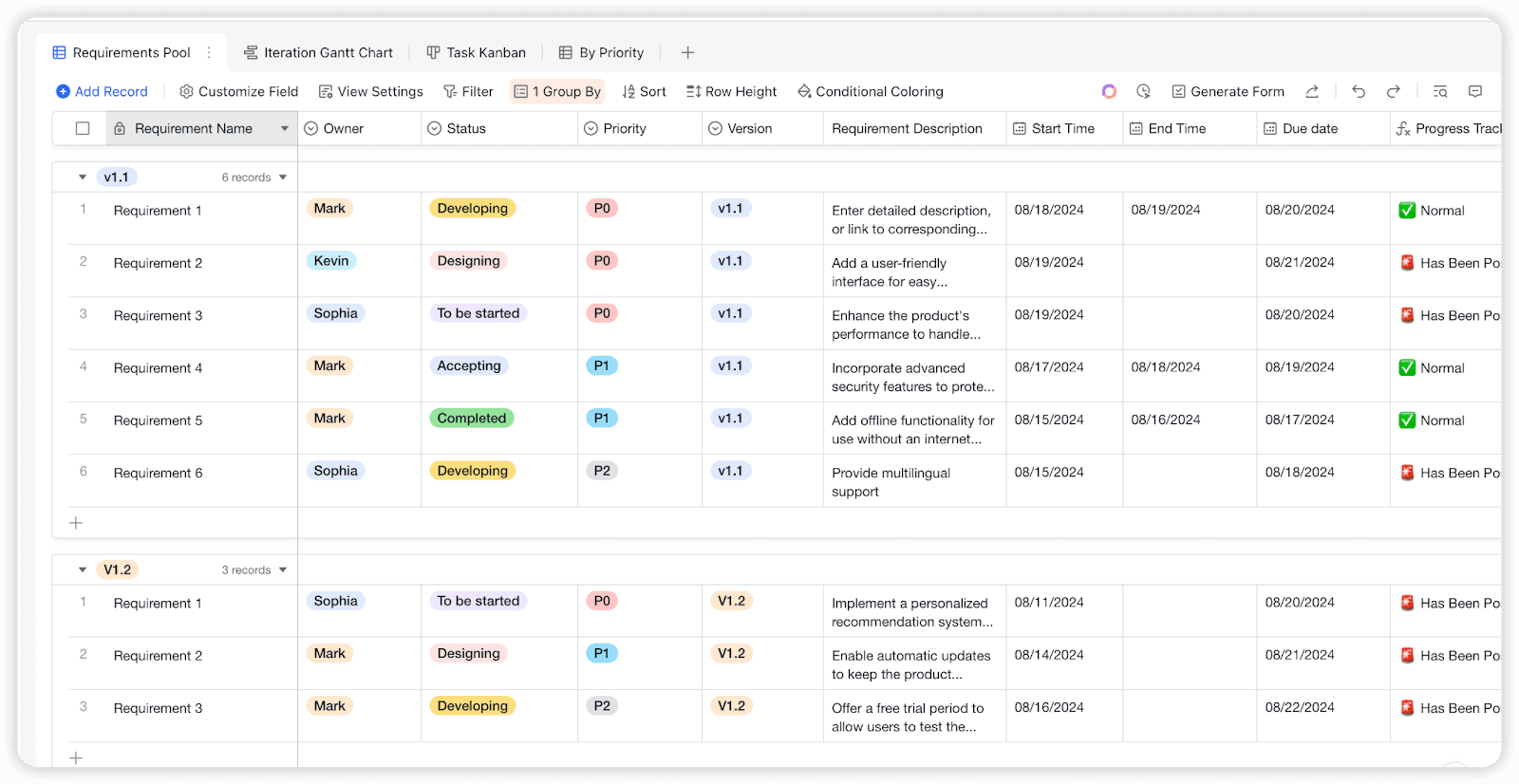 Lark Base: 요구사항 및 버그 관리