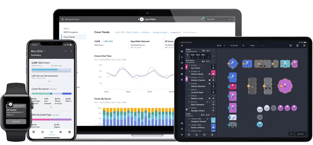 OpenTable은 온라인 레스토랑 예약 분야에서 가장 잘 알려진 이름 중 하나입니다. 주로 예약 플랫폼이지만, 상당한 레스토랑 CRM 기능도 제공합니다. OpenTable을 사용하는 레스토랑은 방대한 식사 고객 네트워크에 접근할 수 있으며, 시스템은 예약 시마다 게스트 사용자 정보를 수집하여 고객 선호도, 방문 기록, 특별 메모 데이터베이스를 구축합니다. 이를 통해 레스토랑은 직원들을 인식하고, 서비스를 개인화하며, 좌석 및 게스트 사용자 흐름을 효율적으로 관리할 수 있습니다. OpenTable은 또한 이메일 마케팅과 게스트 사용자 피드백 도구를 제공합니다.