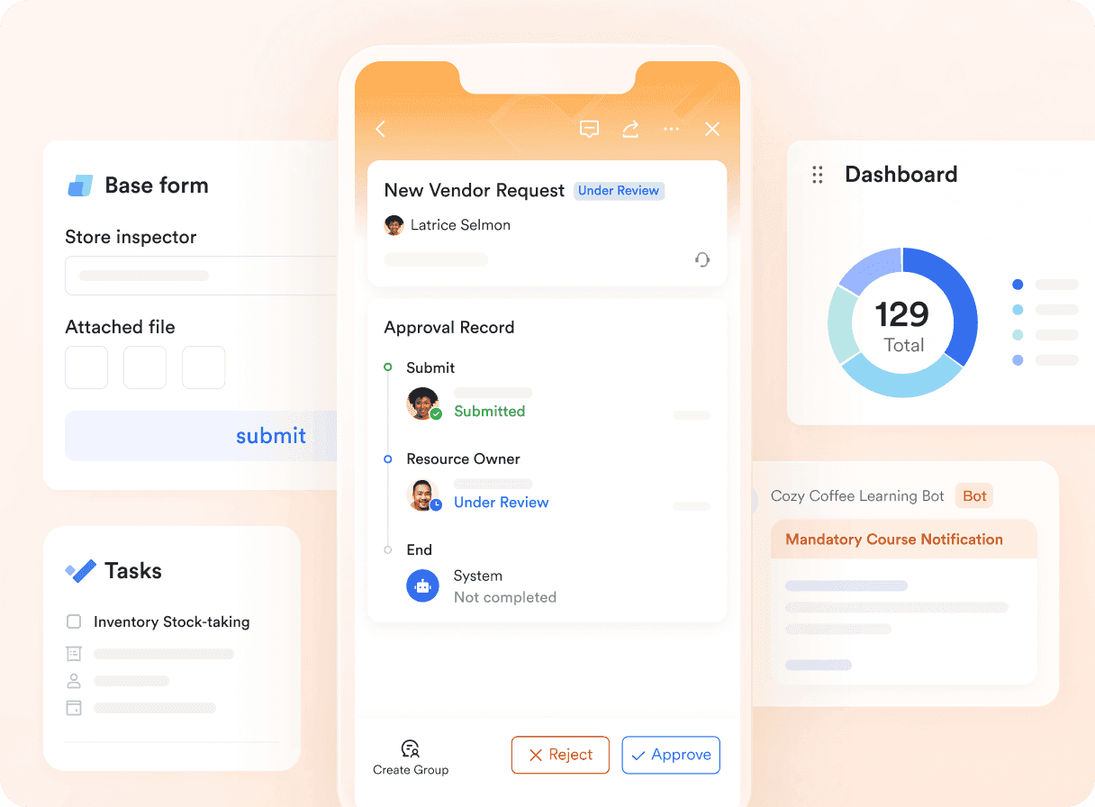 현장 직원들을 위해 Lark는 단순함을 목표로 합니다. 직원들은 휴대폰에서 바로 정보를 쉽게 입력하고 업데이트할 수 있습니다. 예를 들어, 서버가 고객의 긍정적인 피드백을 빠르게 기록하거나 주방 직원이 장비 문제를 휴대폰으로 직접 보고하는 상황을 상상해 보십시오.