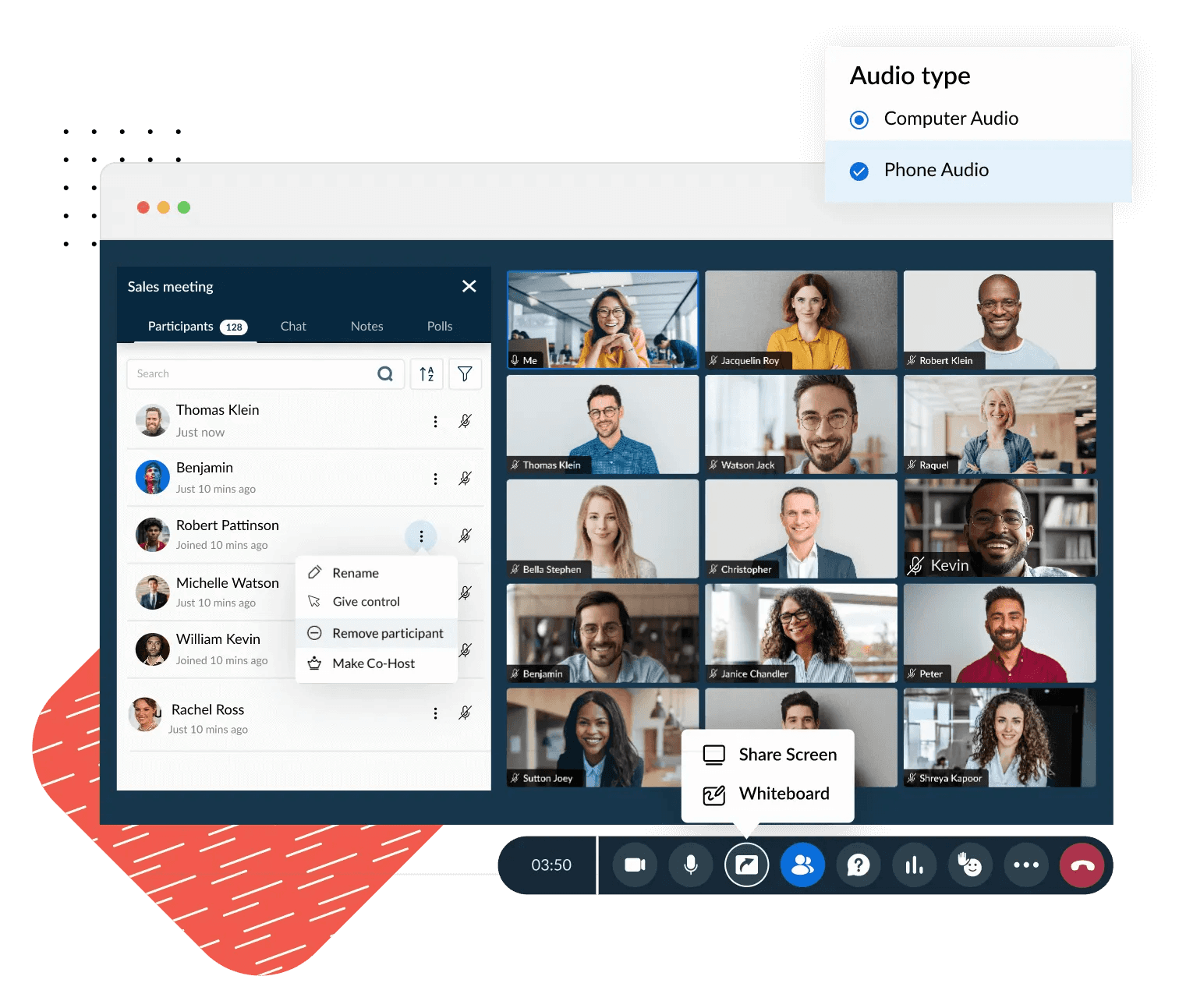 화면 공유 및 웹 오디오: 협업 토론과 프레젠테이션을 촉진합니다.